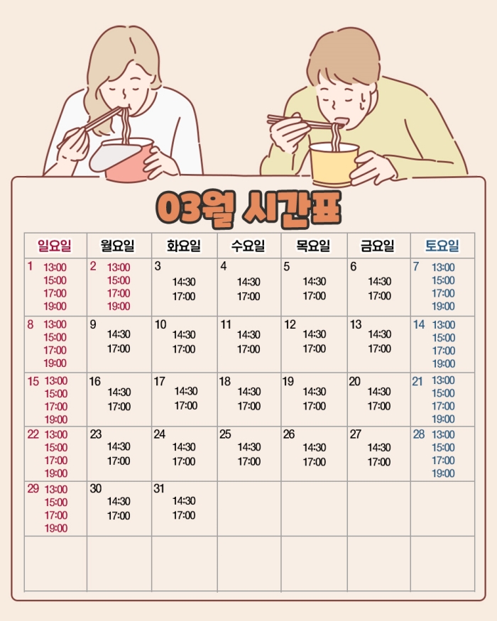 * 주말 및 공휴일 할인(3시, 5시 회차 적용)