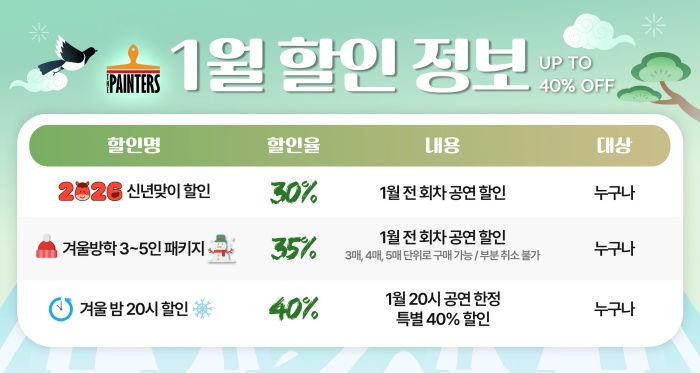 | 유효기간(이용조건) | 2025년05월01일(목) ~ 2026년01월31일(토) (예매한 공연일시에 한해 이용 가능) | ||||||||