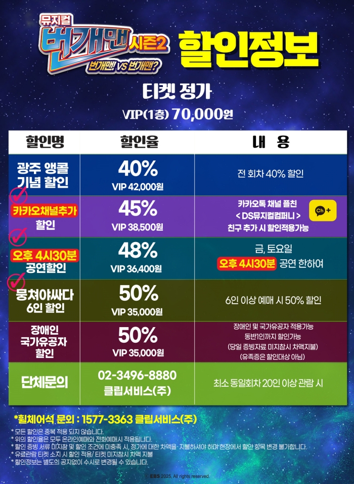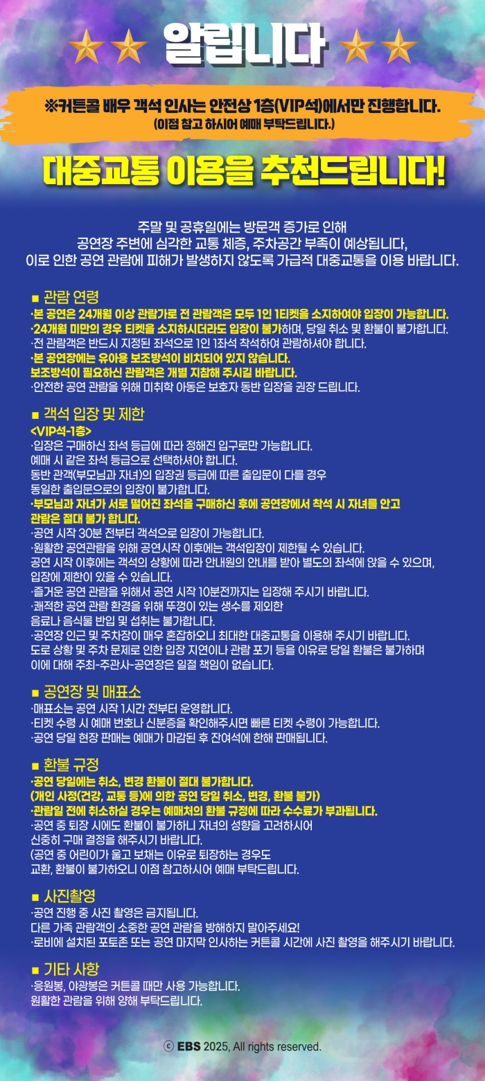 유효기간(이용조건) | 2025년10월03일(금) ~ 10월04일(토) (예매한 공연일시에 한해 이용 가능) | ||||||||