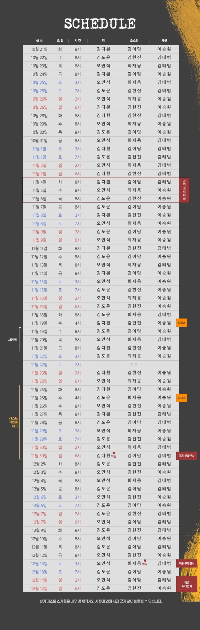 | 유효기간(이용조건) | 2025년11월14일(목) ~ 12월07일(일) (예매한 공연일시에 한해 이용 가능) | ||||||||
