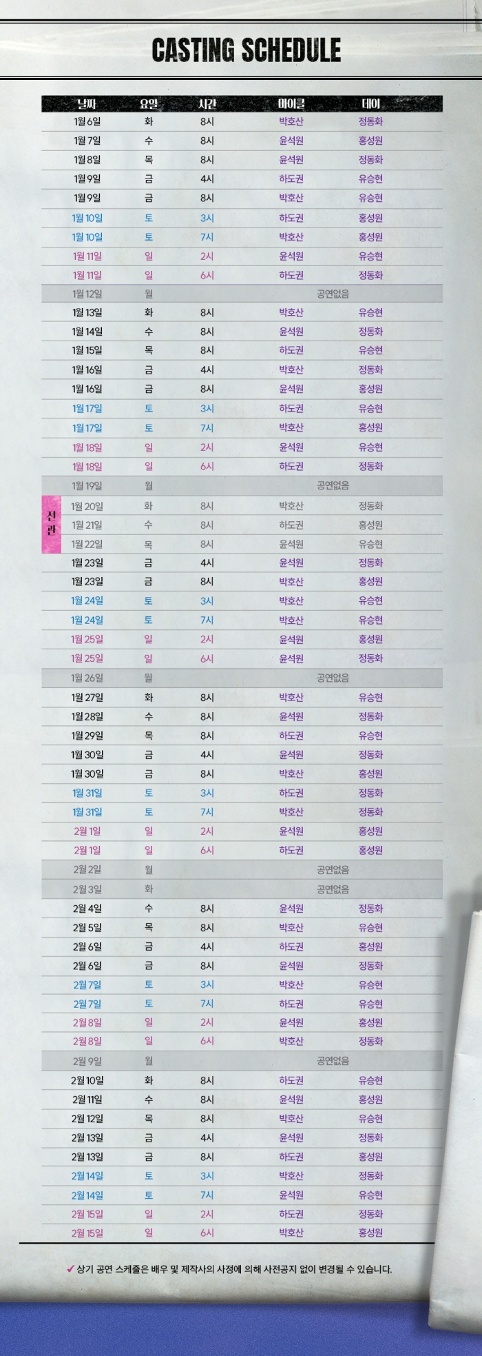 | 유효기간(이용조건) | 2025년11월27일(목) ~ 2026년02월15일(일) (예매한 공연일시에 한해 이용 가능) | ||||||||