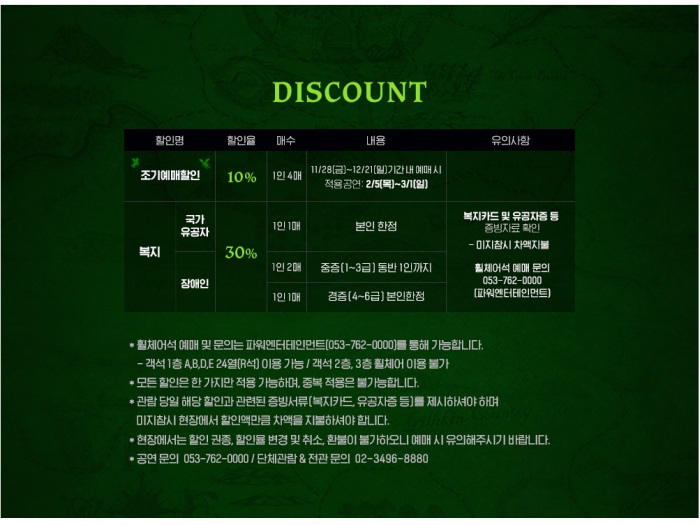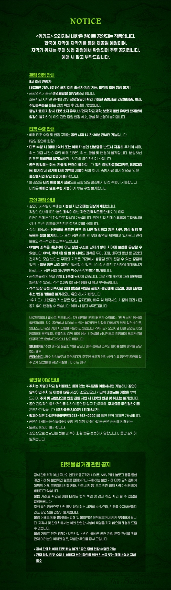 | 유효기간(이용조건) | 2026년02월05일(목) ~ 03월01일(일) (예매한 공연일시에 한해 이용 가능) | ||||||||